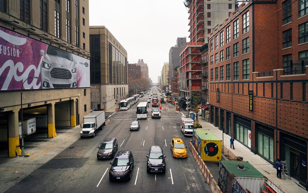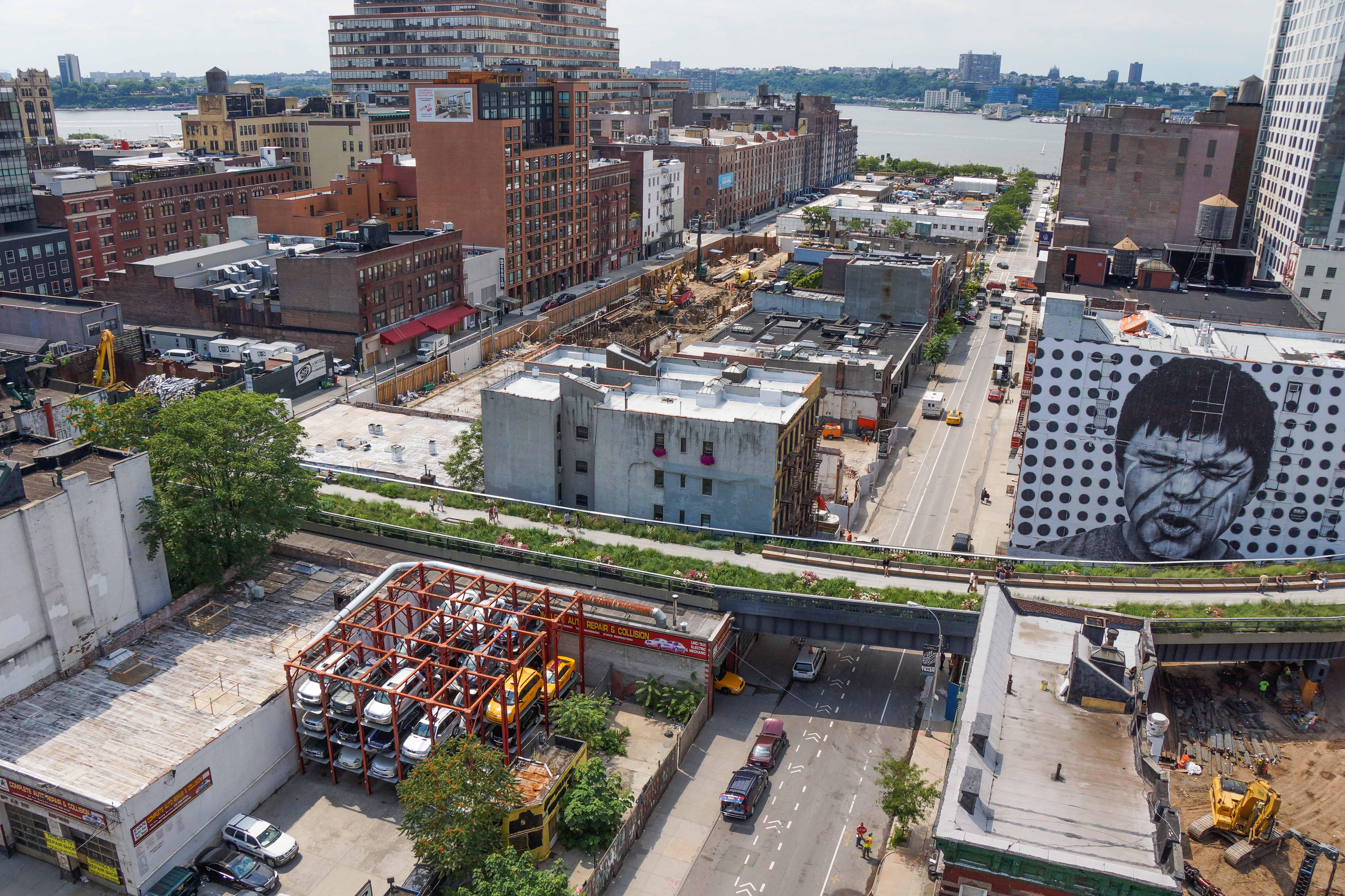 But a puzzling question remains: in the pre-drone era, how did the photographer manage to get a photograph of George and Cyclone from above, in the dead center of Tenth Avenue? And then my friend Randy Johnson, who oversees construction of the High Line’s final section known as the Tenth Avenue Spur, invited me to have a look at the work-in-progress. For the fun of it, I snapped a shot looking south on Tenth Avenue: